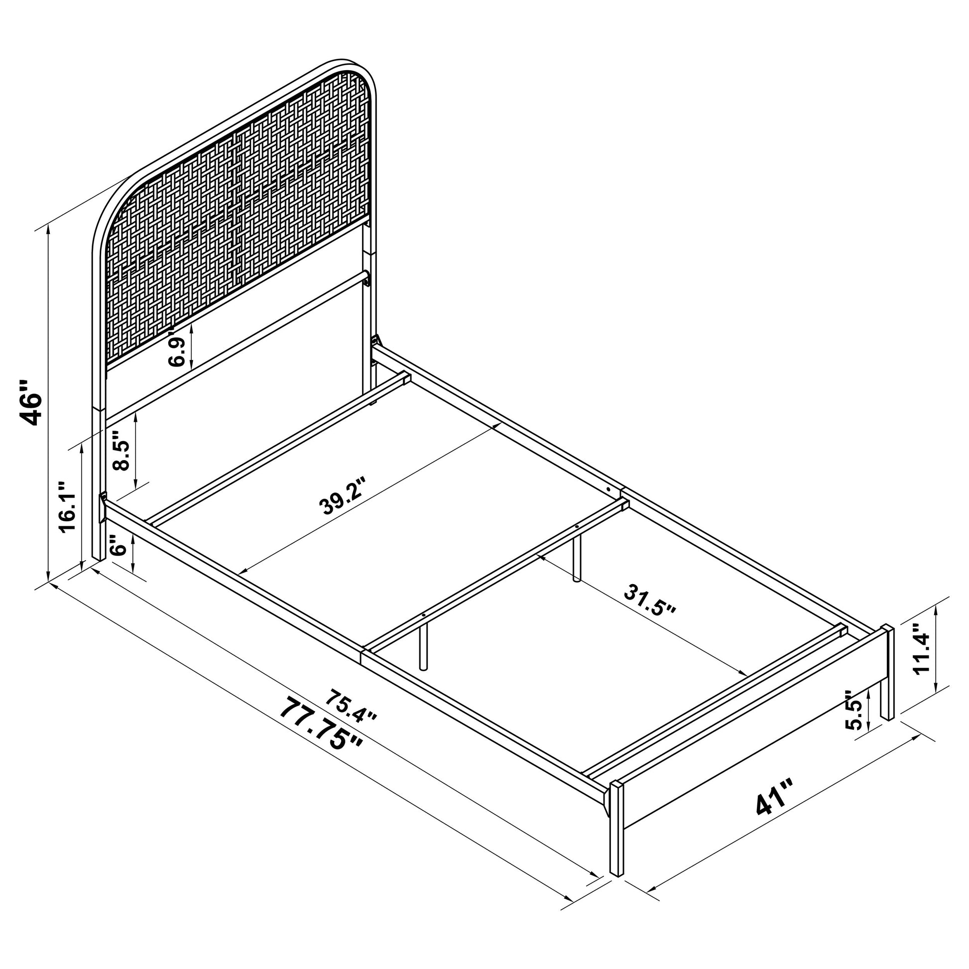 Introduce a touch of contemporary charm to your bedroom with this elegantly designed bed. Crafted with a heavy gauge steel frame, it offers robust durability while maintaining a sleek aesthetic. The headboard features woven radio weave cane webbing, made from sustainable polyethylene rattan, providing both a stylish and eco-friendly choice. This bed seamlessly combines modern materials and traditional weaving techniques, creating a unique focal point for your space. Perfect for those seeking a blend of durability, style, and sustainability in their home decor.