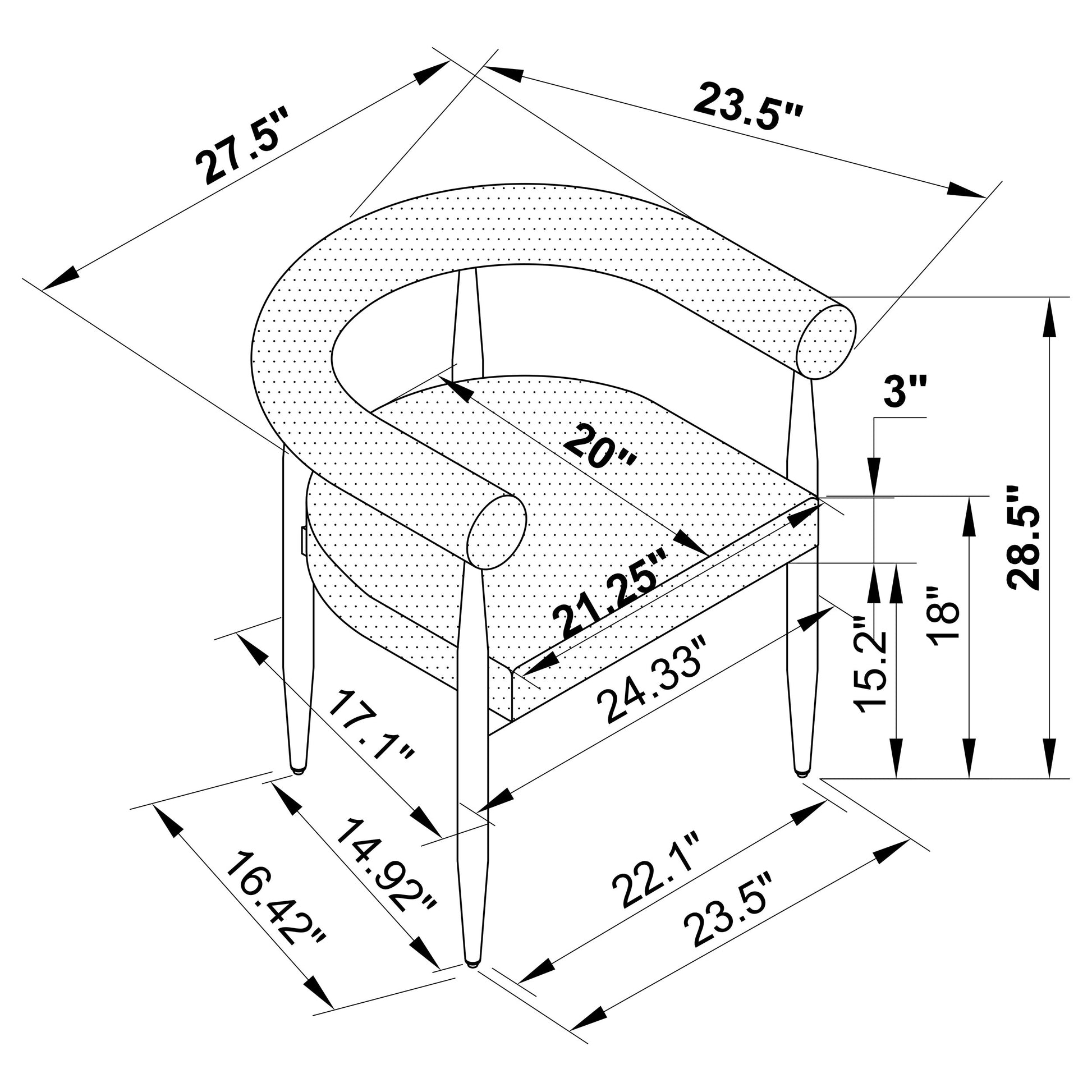 • Chairs feature slim, curved backs and plush cushioning in cream upholstery with impeccable texture