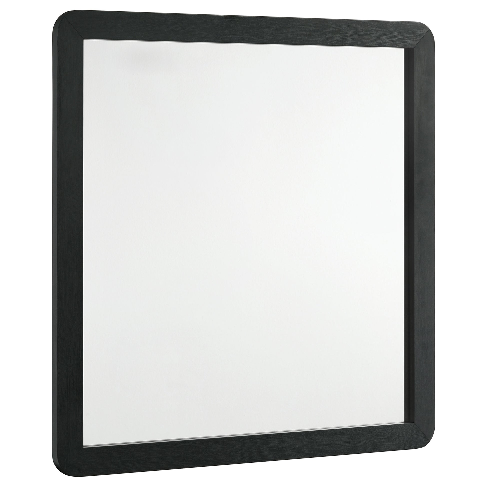 Instill a refined final touch with a modern framed dresser mirror. Its contemporary style is enhanced with a black finish over melamine framing, resisting wear and tear for a chic look that lasts. It features rounded corners on its frame, creating an open, inviting touch of elegance. The mirror boasts flat glass for a fresh, refined presentation. It mounts directly to your dresser, creating airy reflectivity perfect for grooming and beauty rituals.