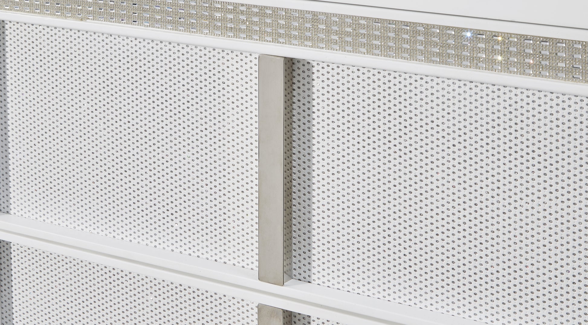 Transform your bedroom with this dresser. Its modern design and glamorous details create a sophisticated retreat. The built-in LED lighting and rhinestone-framed drawers add style and practical storage. Let your sanctuary shine—and never let anyone dull your sparkle.