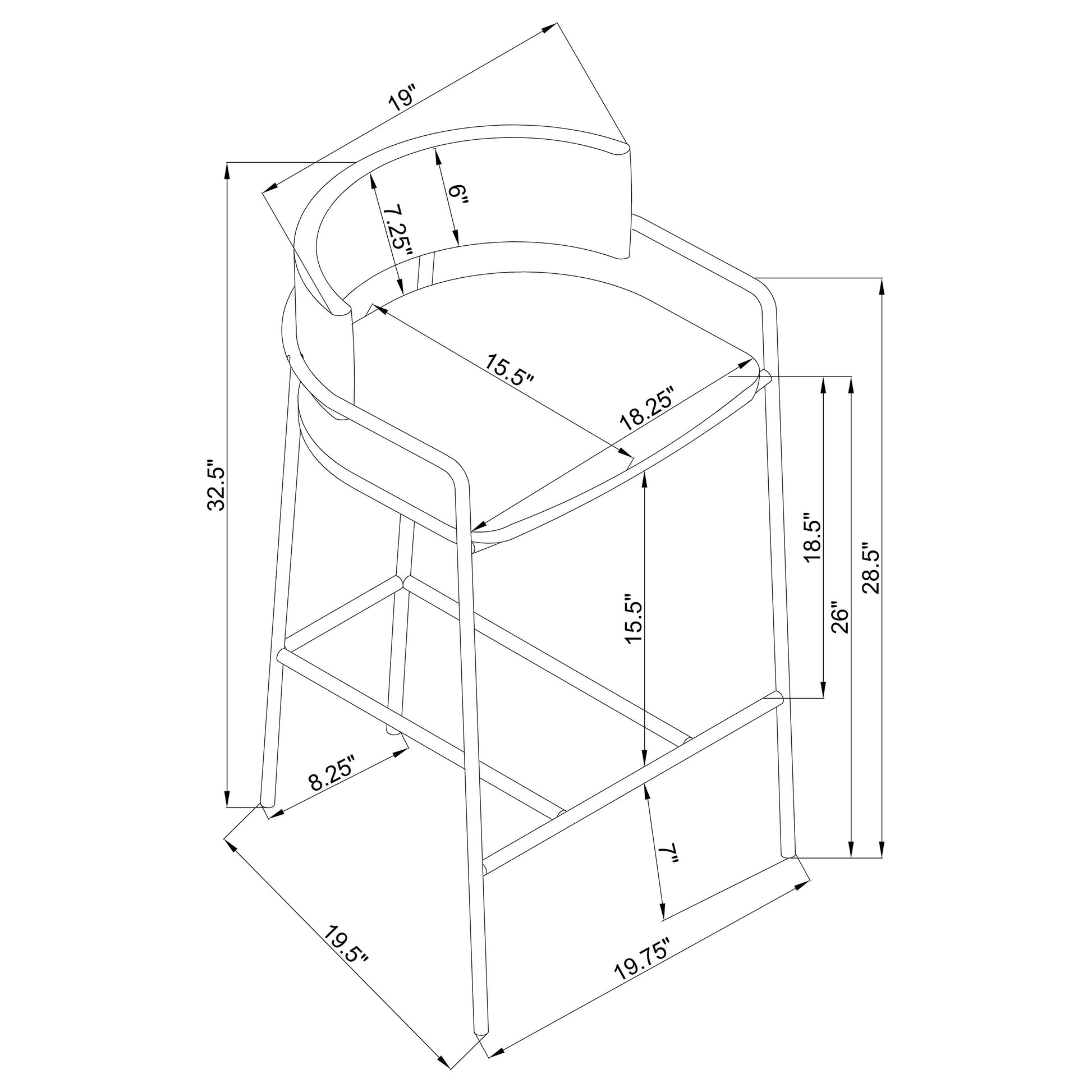 • Slim rod-like frame in a gold finish adds an air of sophistication to any bar top or kitchen island