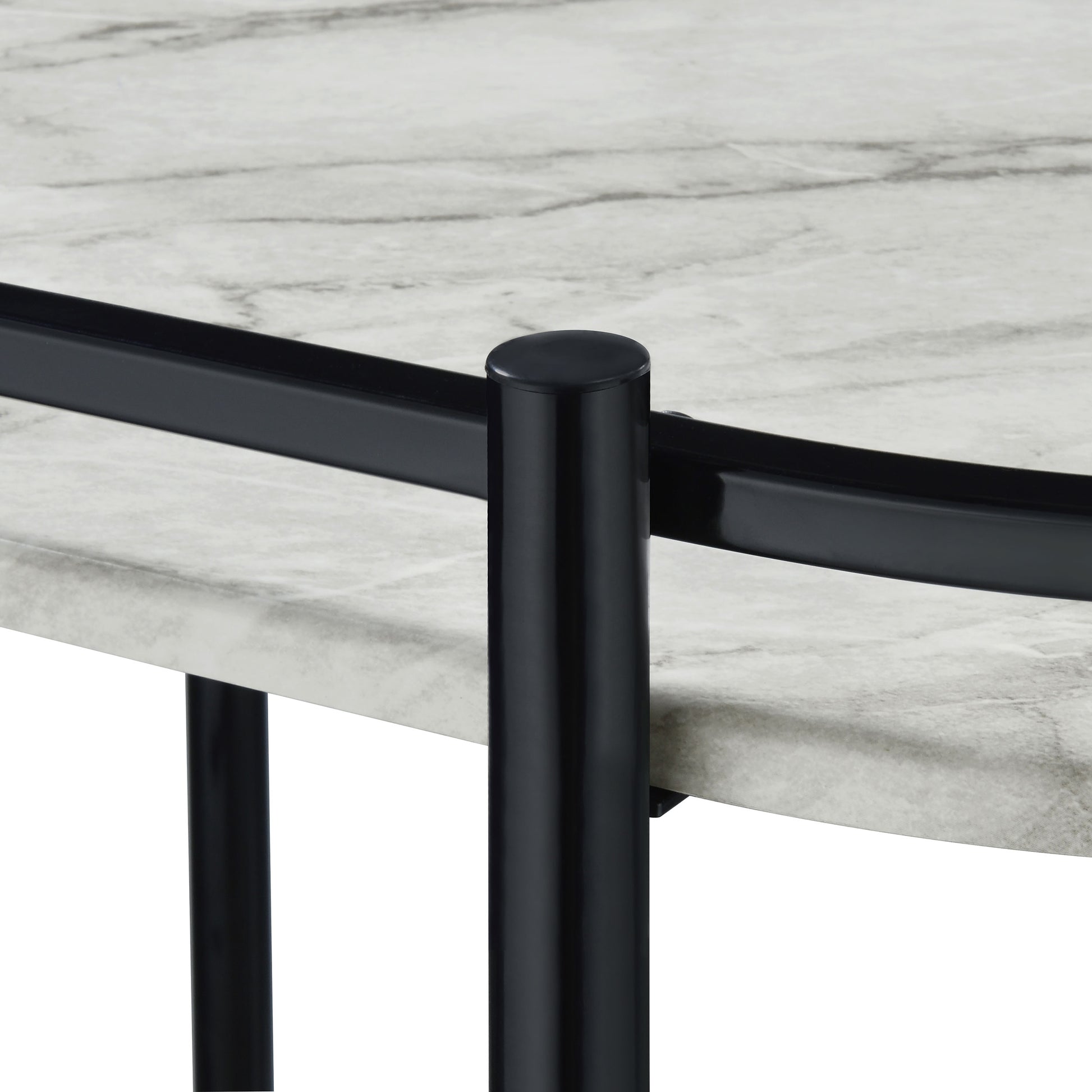 Desiree 2-tier Faux Marble Shelf Metal Bar Cart Black