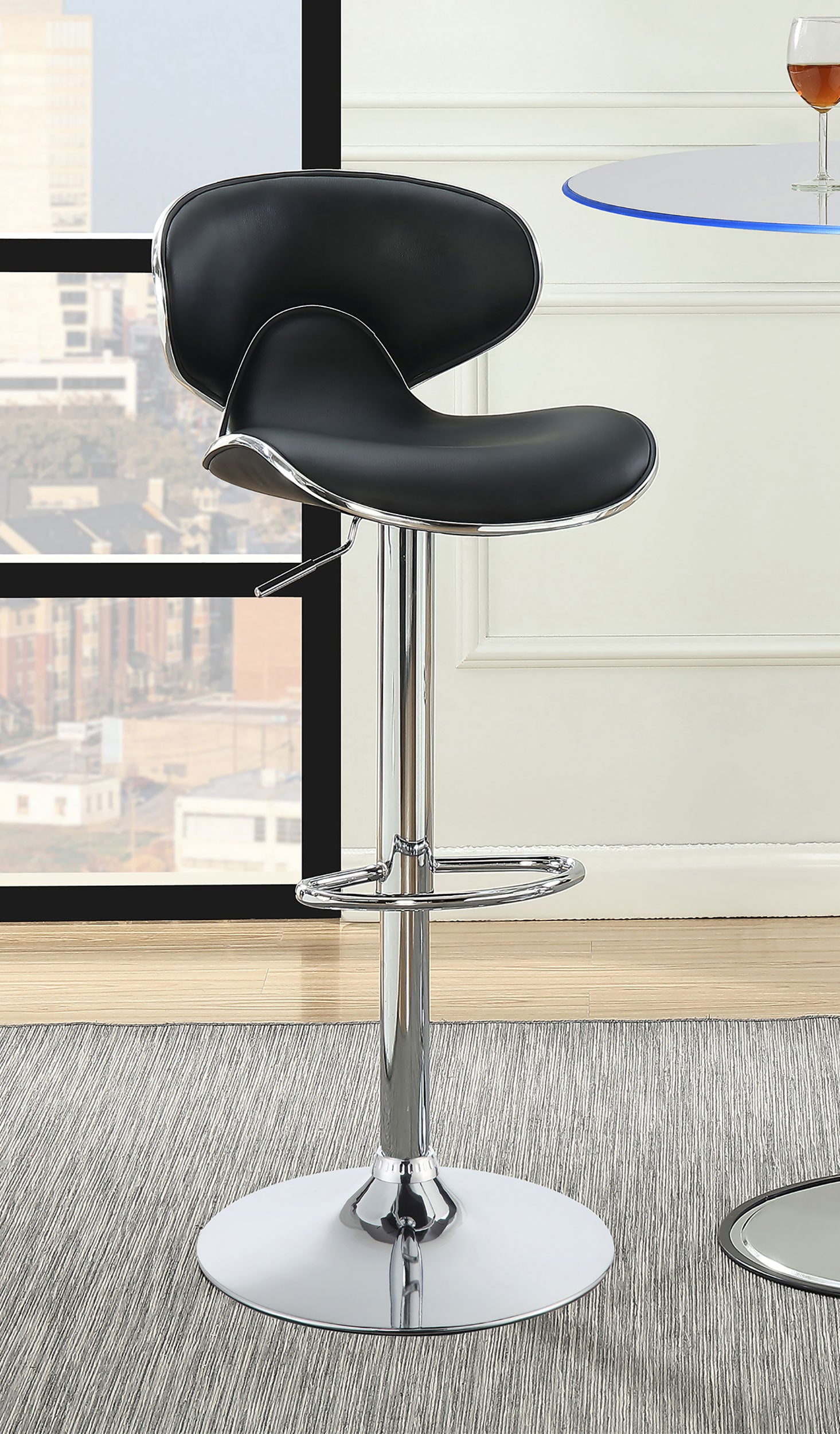 • Adjustable bar stool with a sleek, modern silhouette and curved seat