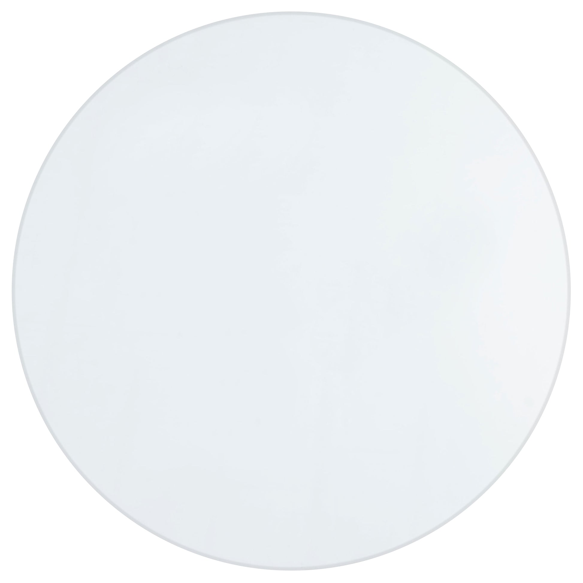 • Round clear glass tabletop and column-like pedestal base offers an open, airy feel