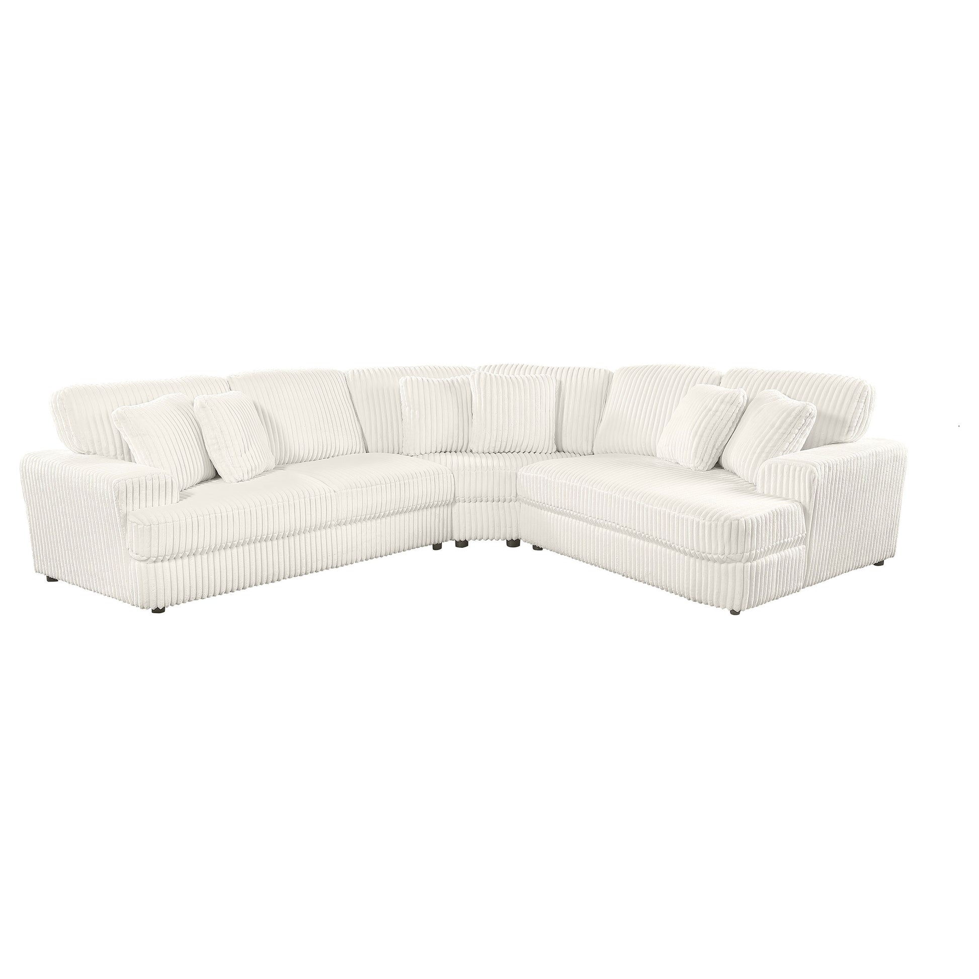 • Spacious three-piece sectional sofa in luxurious ivory wide corduroy upholstery