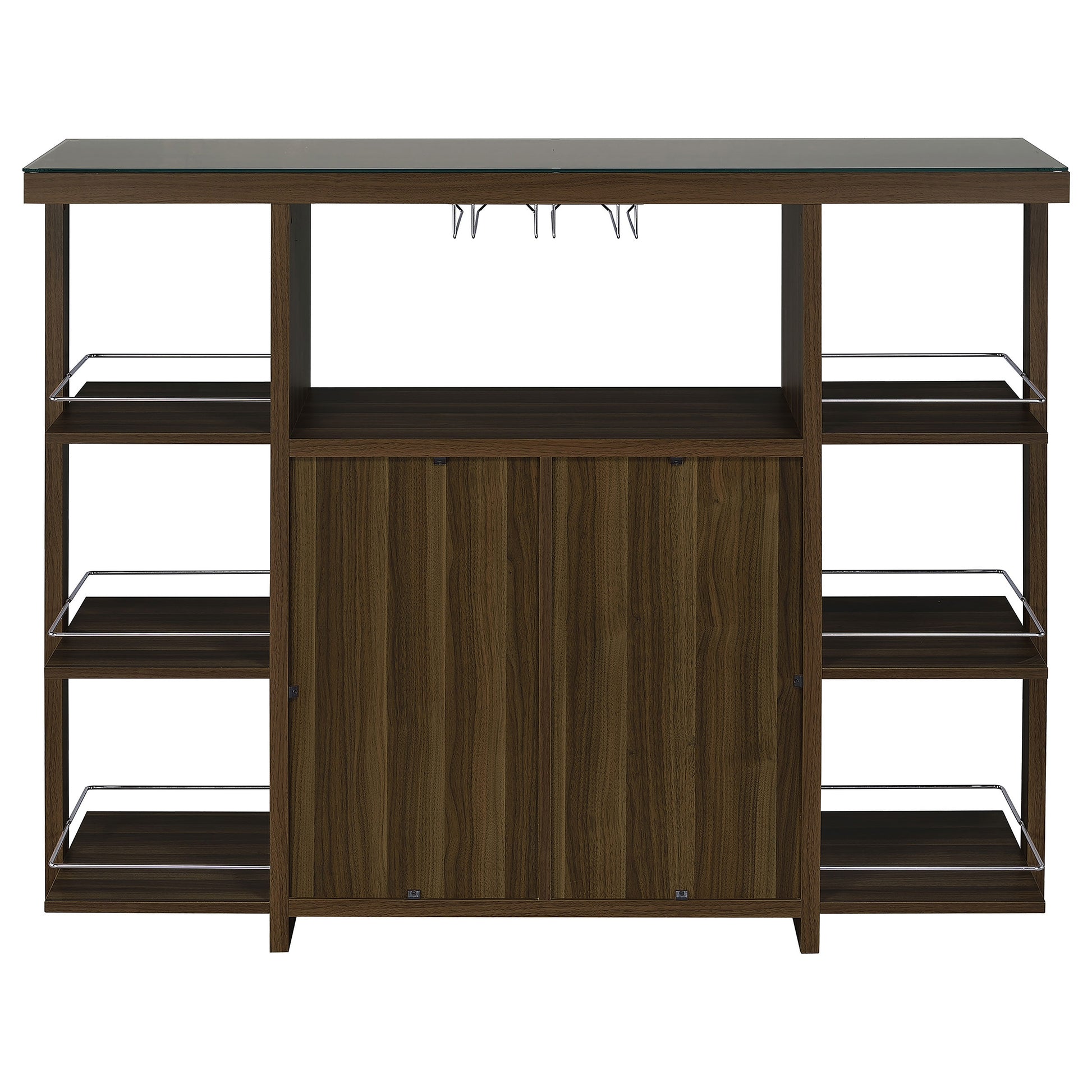 Evelio 6-shelf Glass Top Home Bar Wine Cabinet Walnut