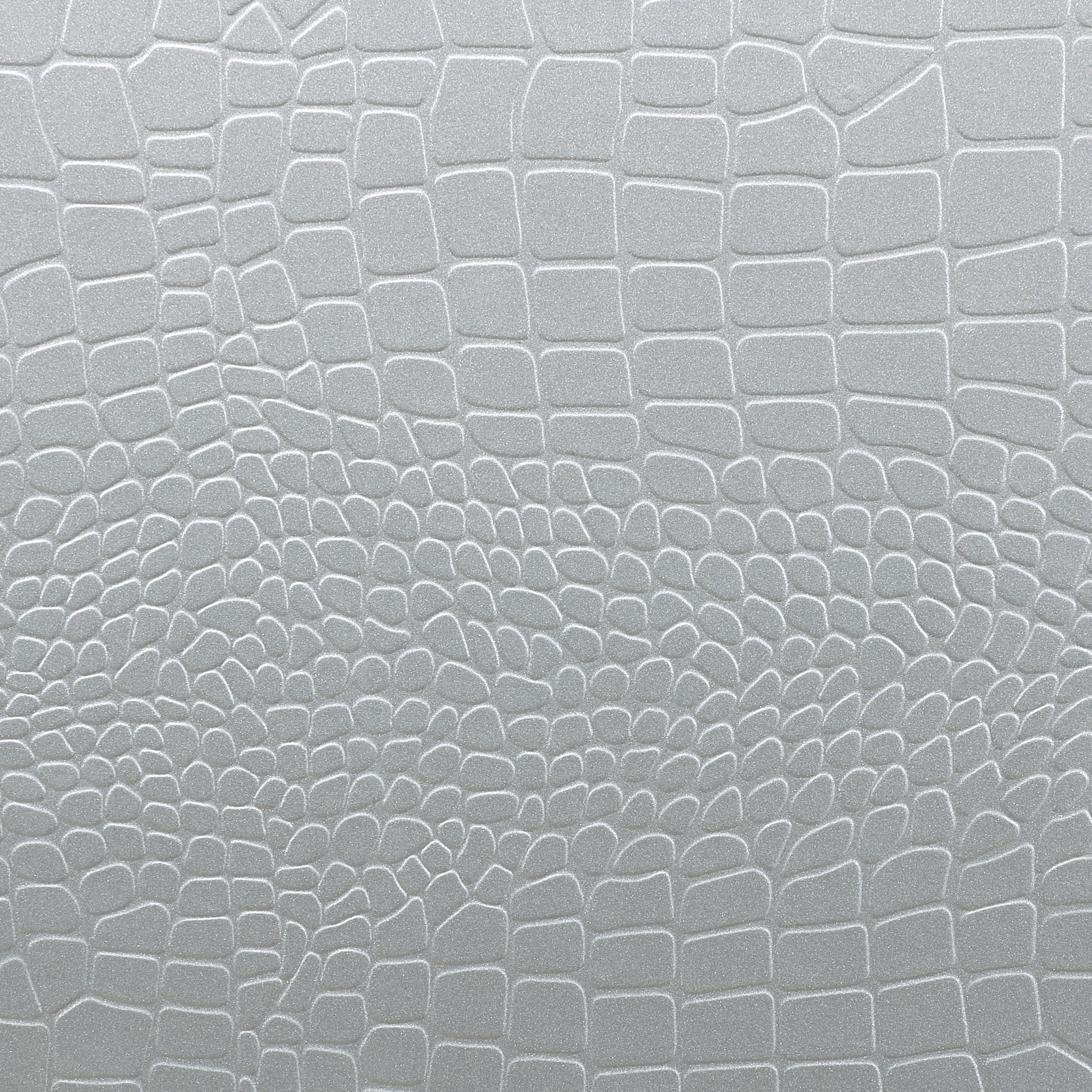 • Silver metallic finish pairs with mirrored trim and crystal hardware throughout