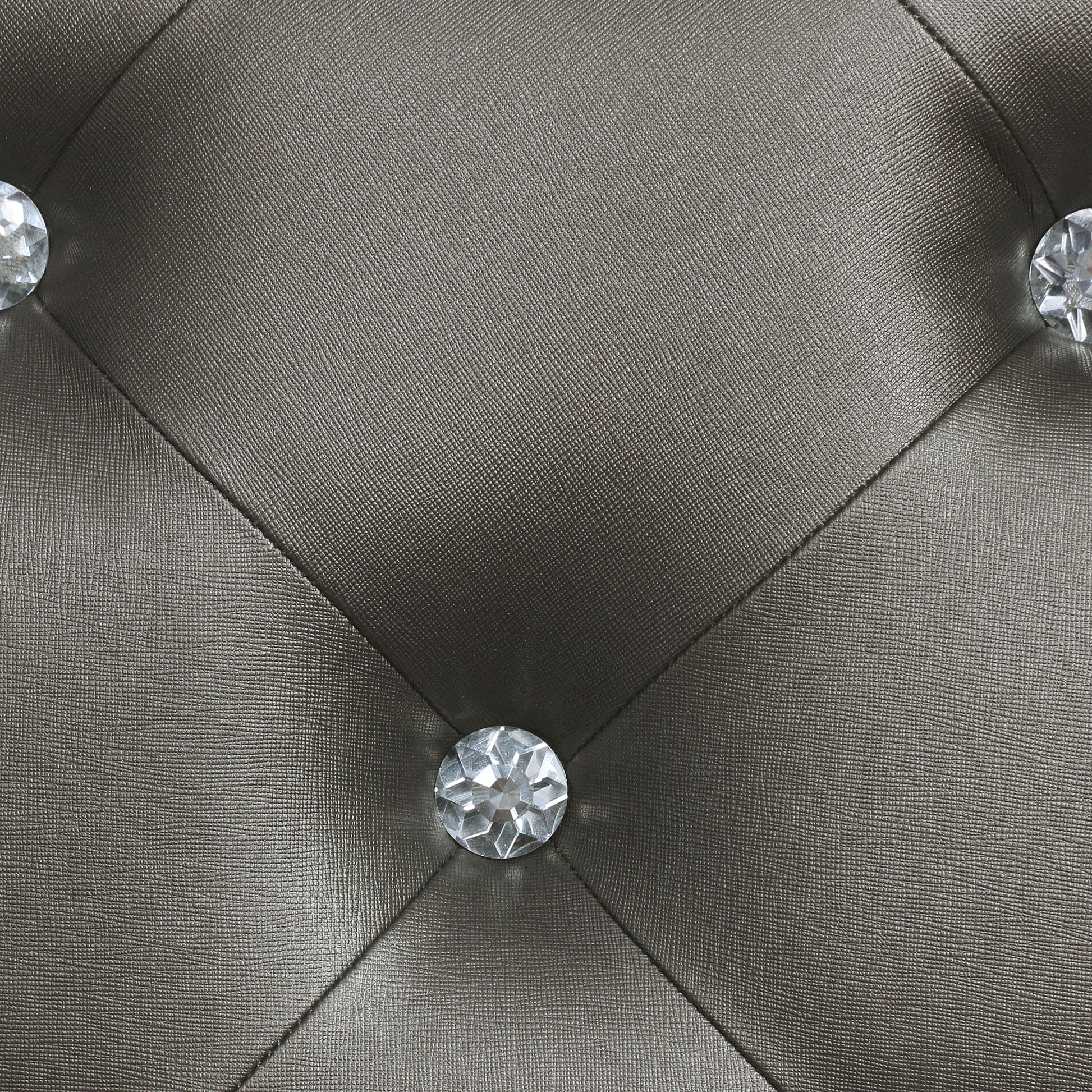 • Headboard features LED lighting and tufted metallic leatherette upholstery