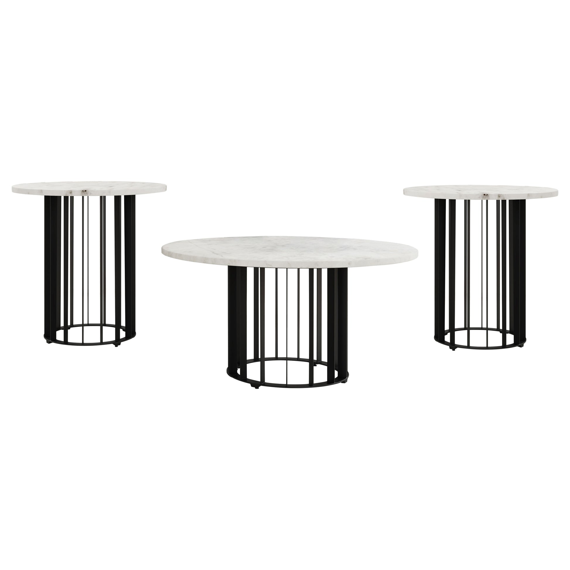 Haven 3-piece Round Marble Coffee and End Table Set Black