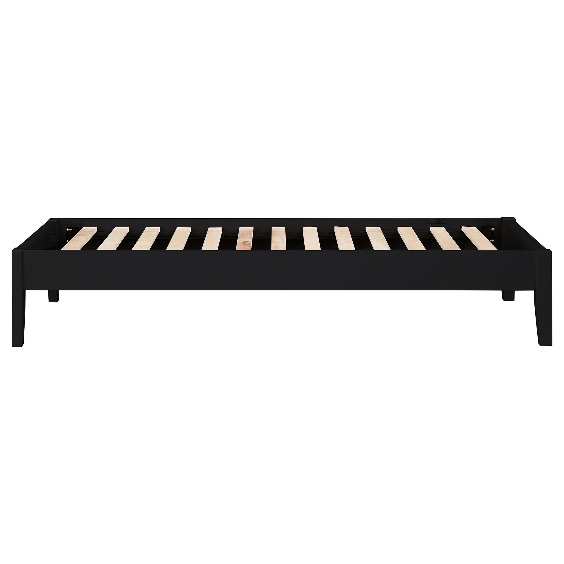 Designed for versatility, this universal platform bed offers a sturdy foundation with a fully slatted, mattress-ready design. Crafted from durable rubberwood and pine, it ensures lasting support and stability. Pre-drilled holes on the back legs allow for effortless headboard attachment, providing customization options to suit various bedroom styles. With its clean lines and solid construction, this bed serves as a functional and stylish base for any sleep space.