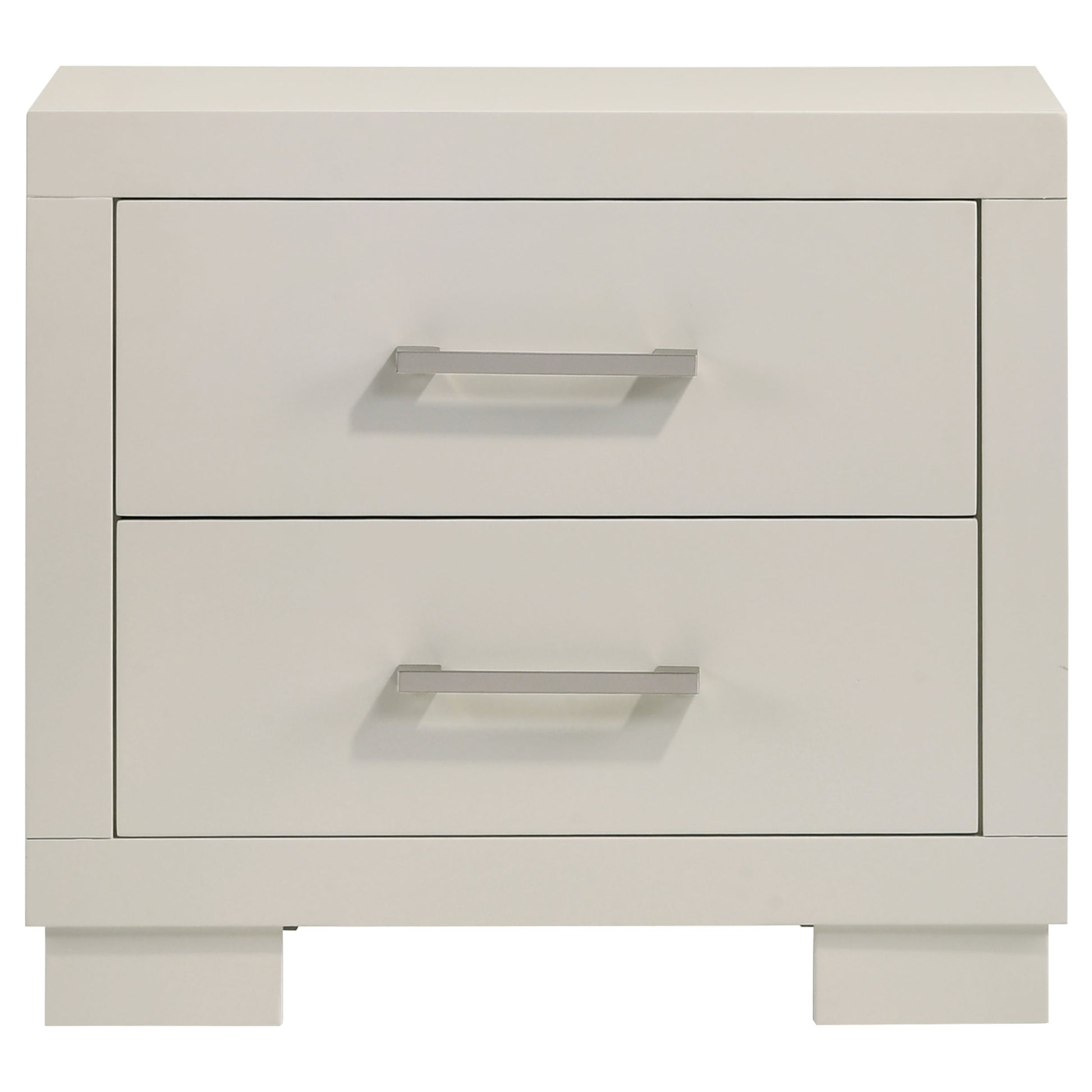 • Four-piece eastern king bedroom set in luminous white modern finish