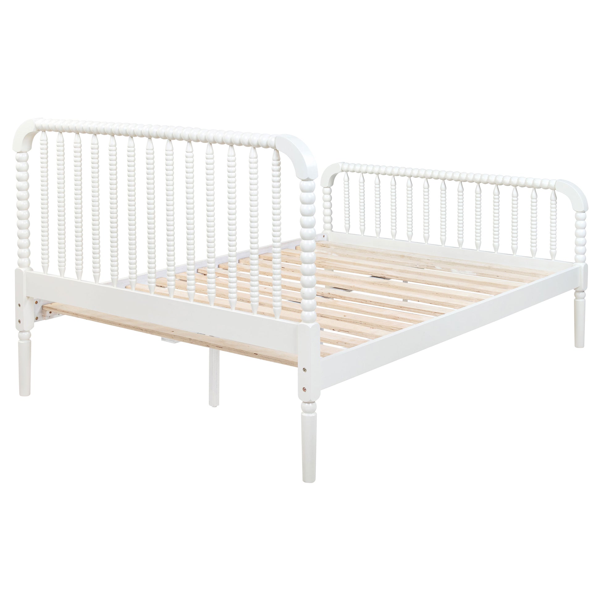 Embrace timeless charm with this Jenny Lind-style platform bed, featuring classic bobbin spindles for a vintage-inspired look. Crafted from solid rubberwood and pine, it offers lasting durability and sturdy support. The gracefully curved headboard and footboard enhance its nostalgic appeal, making it a perfect fit for a guestroom or kids' bedroom. A platform slat base ensures mattress-ready convenience without the need for a box spring, blending traditional design with modern functionality.