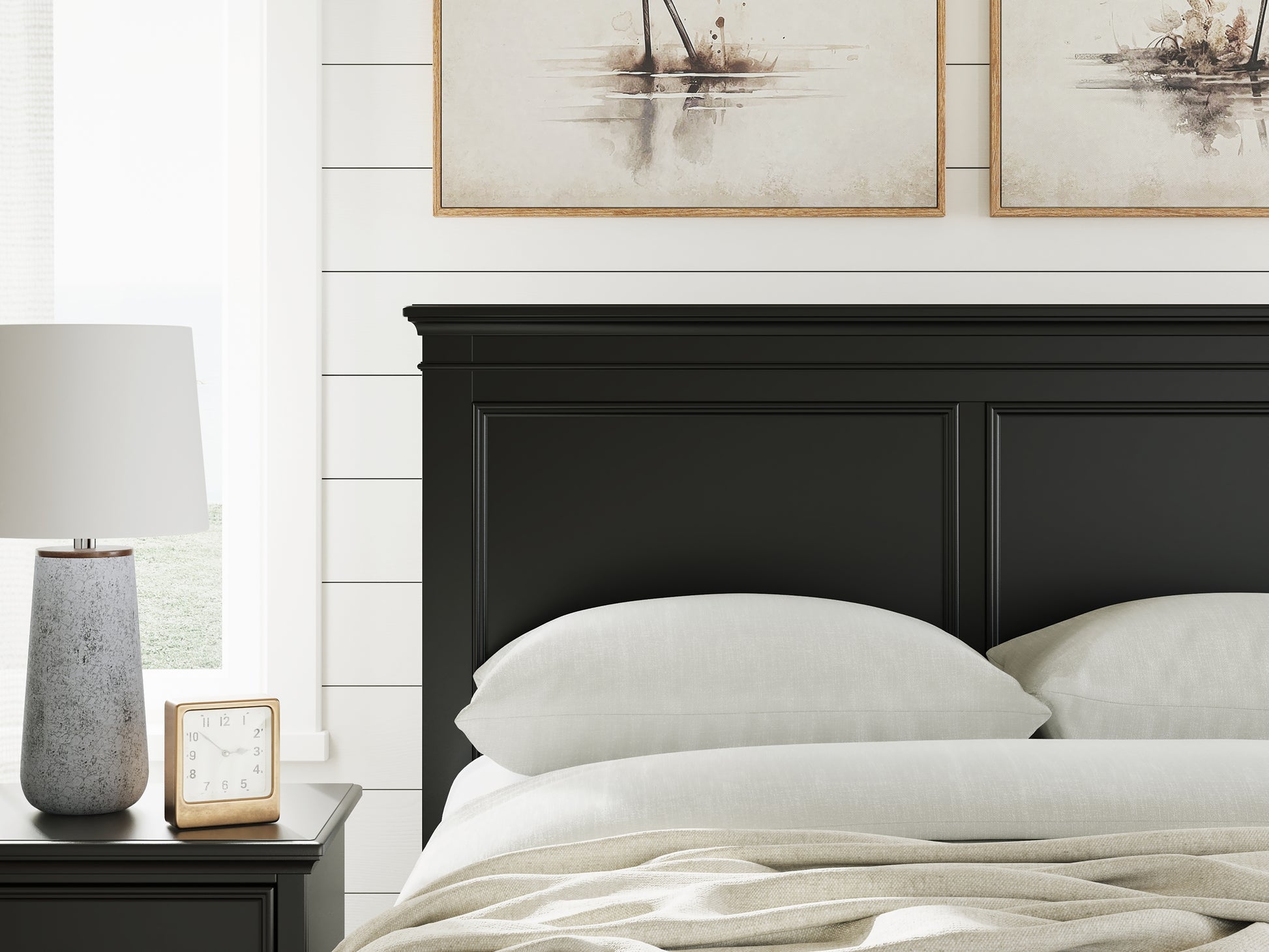 Details | Includes panel headboard, storage footboard with roll slats and rails , Made with hardwood solids, birch veneer and MDF substrate, Side rails feature laminated solid hardwood slat support rails (or LVL) with glued and screwed blocking for added strength, Black painted finish, Round metal knobs with satin nickel-tone finish, 2 smooth-gliding drawers in footboard, Tapered feet, Bed does not require additional foundation/box spring; accommodates most zero clearance adjustable bases with the addition of a bunkie board, Mattress available, sold separately, Assembly required | |