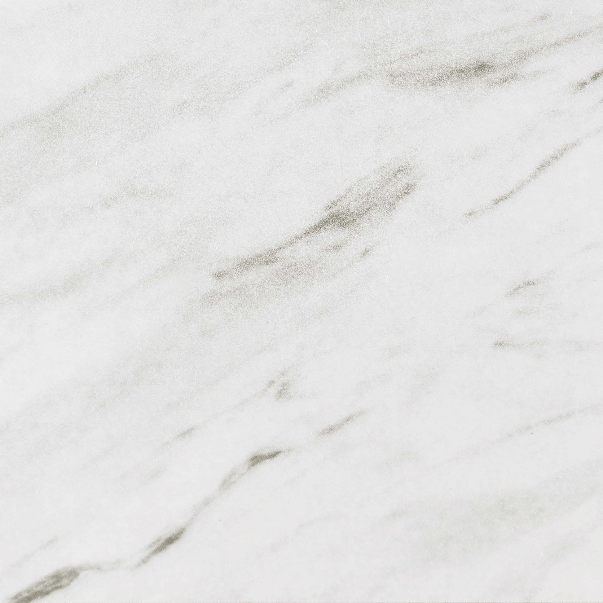 • White faux marble tabletop offers a sleek, high-end look with easy maintenance