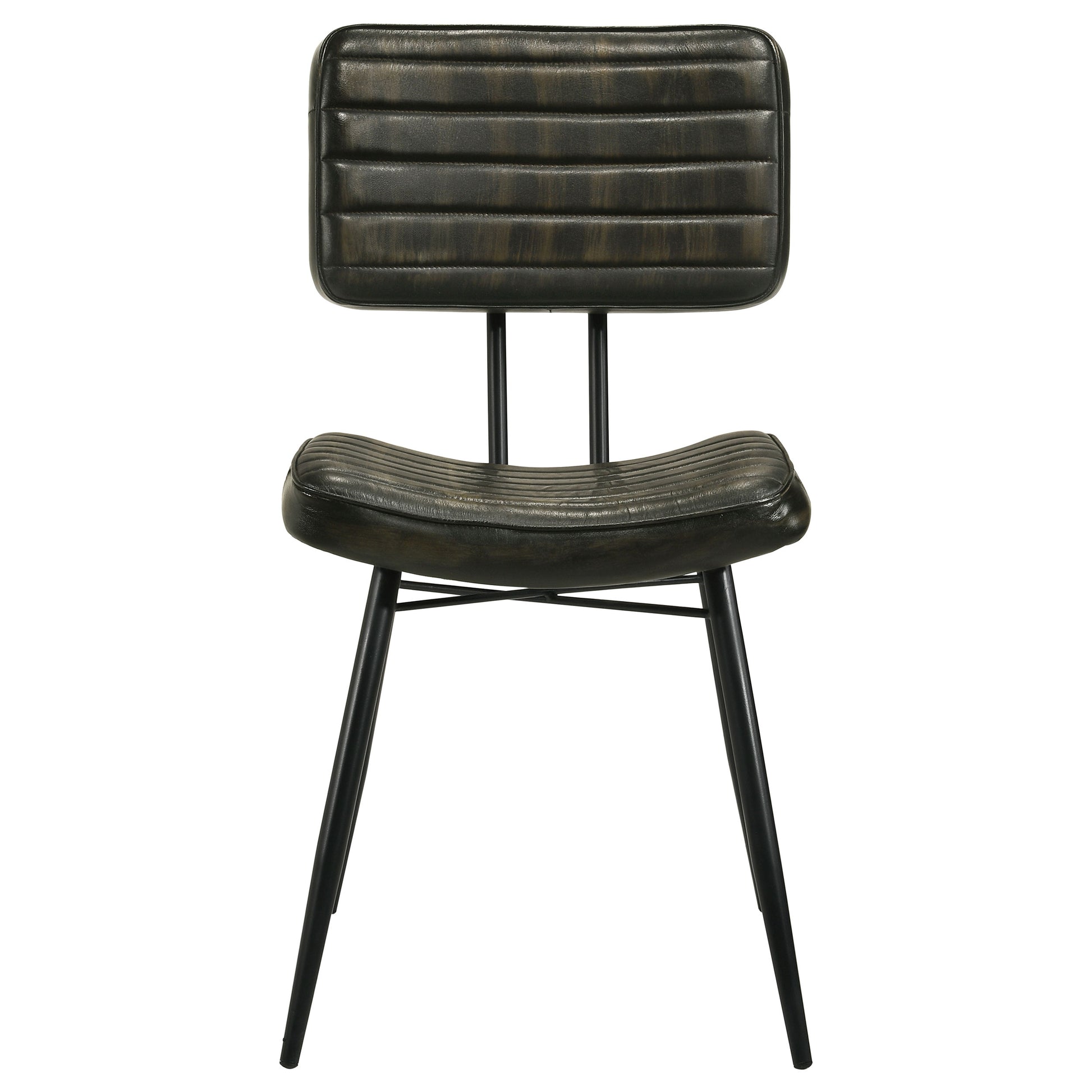 • Side chairs feature iconic metal framing and channeled tufting upholstery