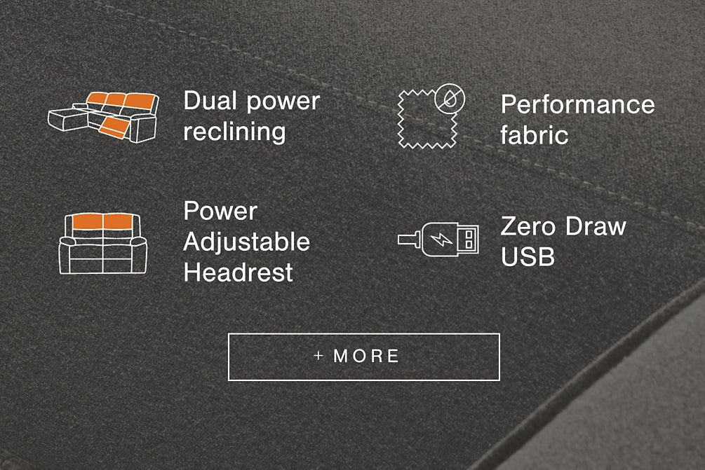 Looking cool and contemporary is great. But when it comes down to it, you’re all about low-maintenance lounging. With the performance fabric on this power reclining sectional with chaise, cleaning spills is a breeze. Its modular design caters to your ever-changing needs. And the console’s plexiglass top is the perfect beverage perch during family movie night or when guests drop by. It's proof that modern design and superb comfort go hand in hand.