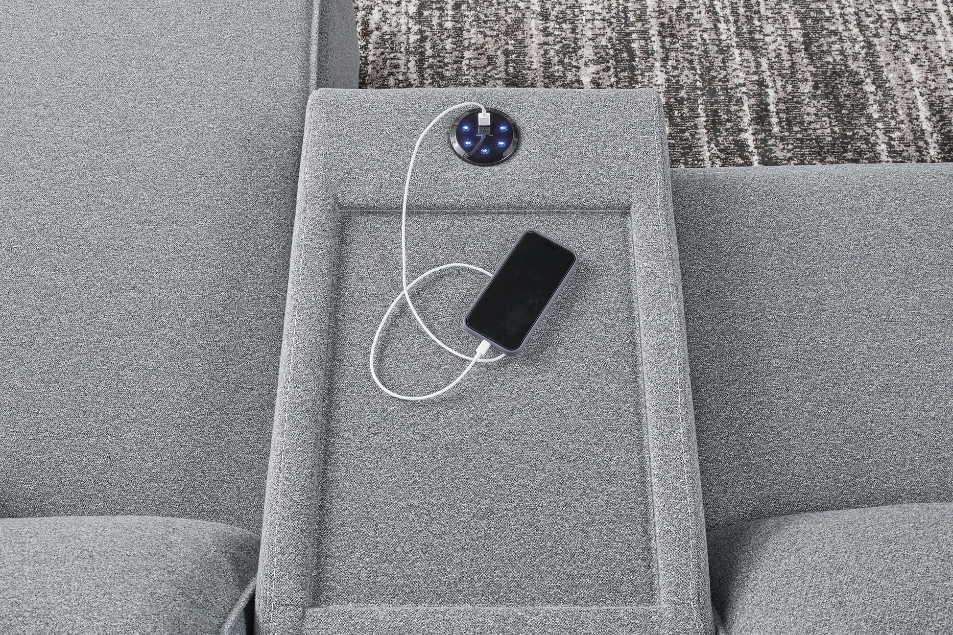 Looking cool and contemporary is great. But when it comes down to it, you’re all about low-maintenance lounging. With the performance fabric on this power reclining sectional with chaise, cleaning spills is a breeze. Its modular design caters to your ever-changing needs. And the audio consoles' built-in speakers with wireless connectivity turn your living room into an entertainment hub. It's proof that modern design and superb comfort go hand in hand.