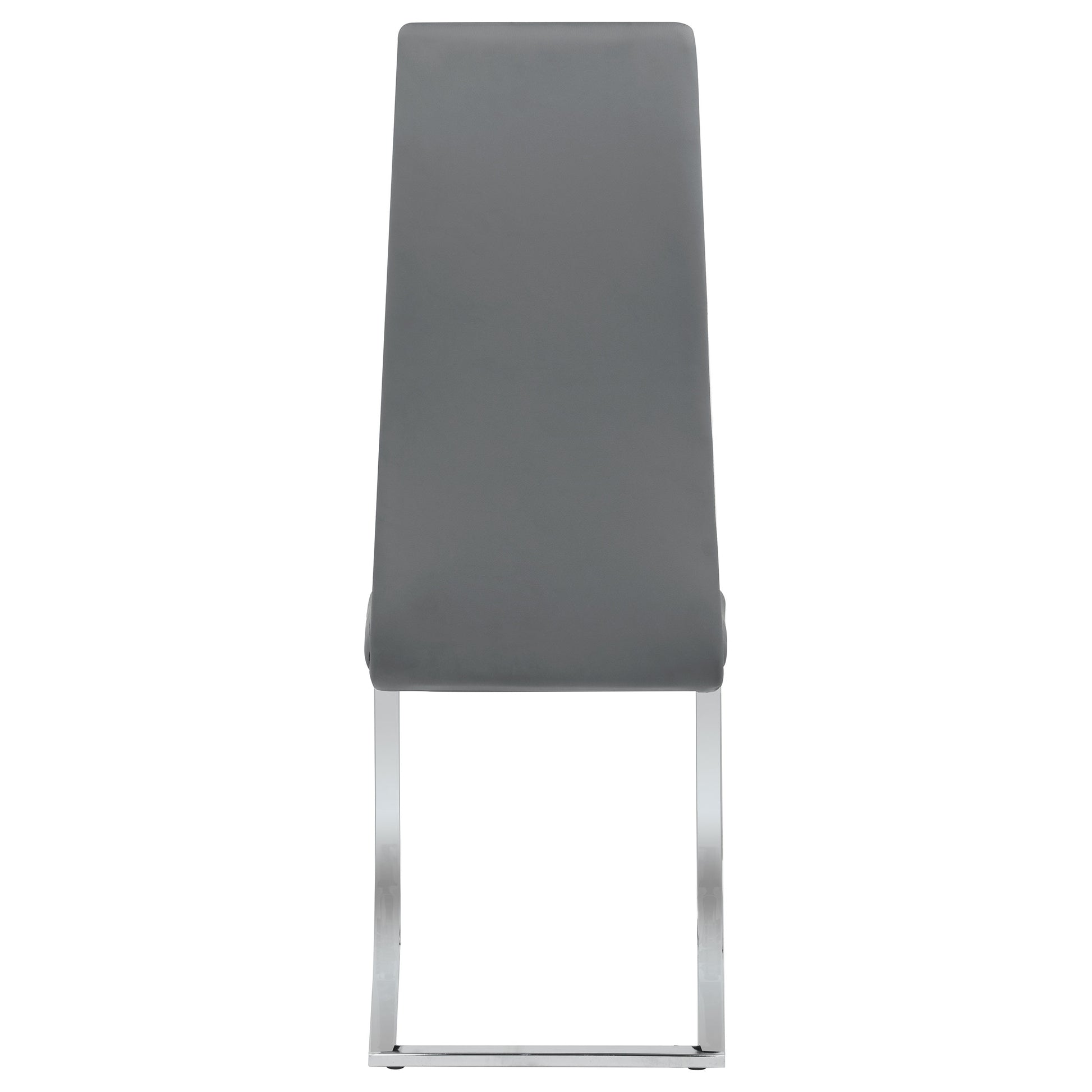 This set of four side chairs add a modern touch to a contemporary dining space. Each contemporary dining chair features an elongated backrest that is reminiscent of the iconic Breuer design, further lending to its modern flair. Invite guests over for a long evening of dinner and drinks, knowing they are comfortable and supported by an ergonomic curved backrest wrapped in a foam-filled grey leatherette. A padded seat features a waterfall front edge that falls elegantly into a U-shaped chrome finish frame and leg supports. In addition, this set of four chairs is available to suit your current color palette, offered in multiple colors to suit your tastes.