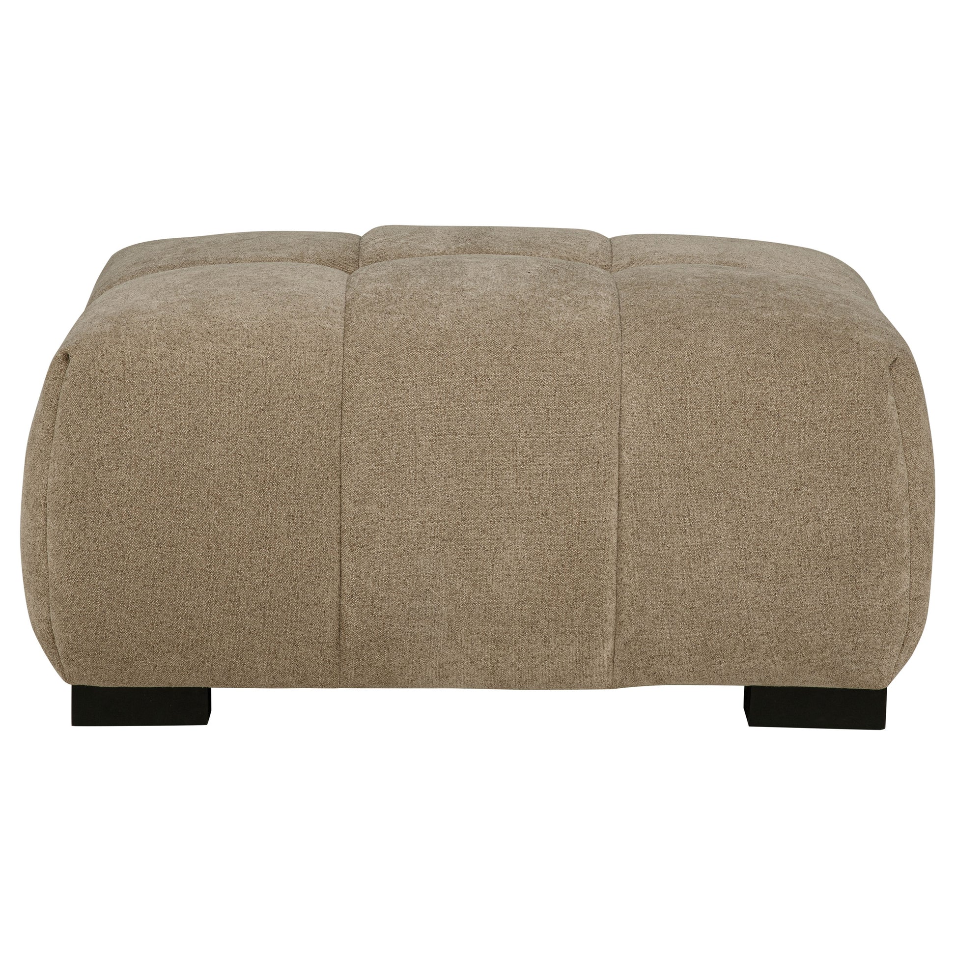 • Ottoman in camel fabric showcases sculptural volume and plush vertical grid tufting
