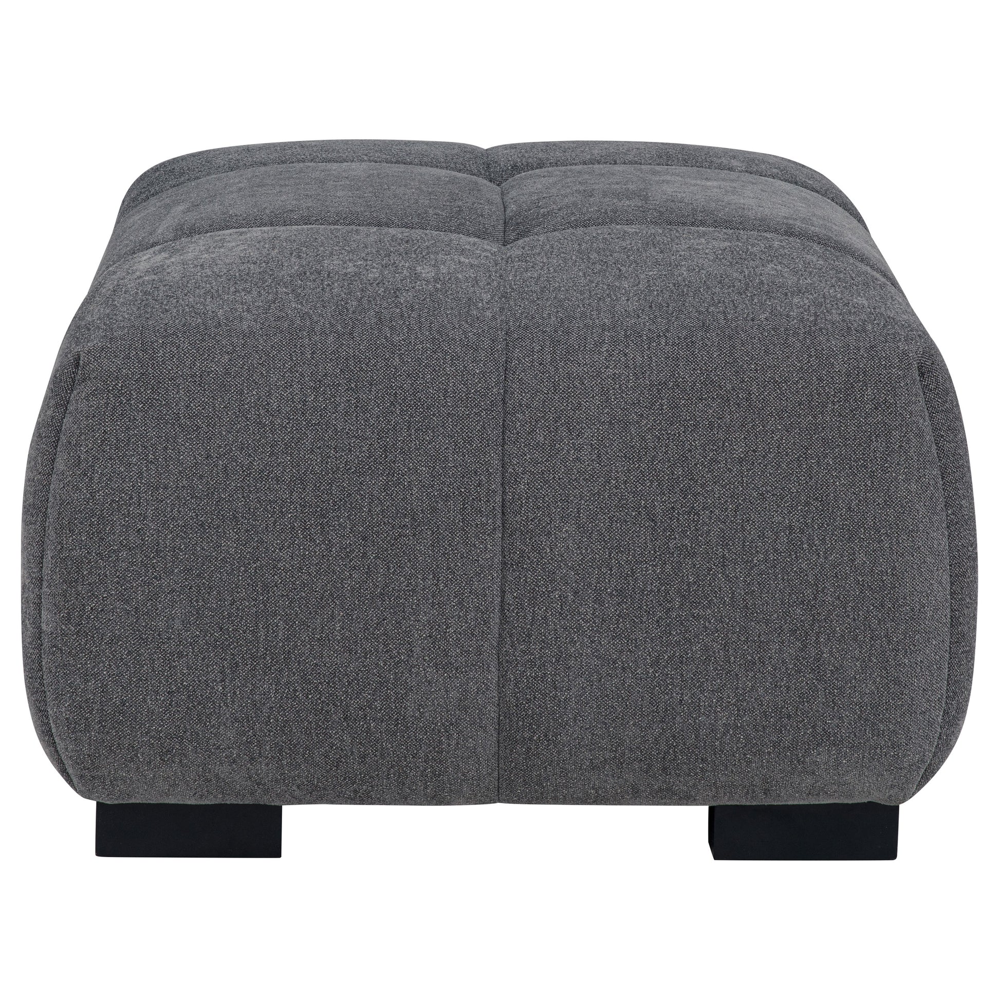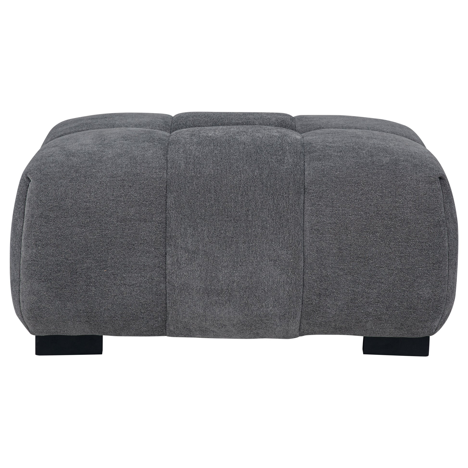 • Ottoman in charcoal grey fabric showcases sculptural volume and plush vertical grid tufting