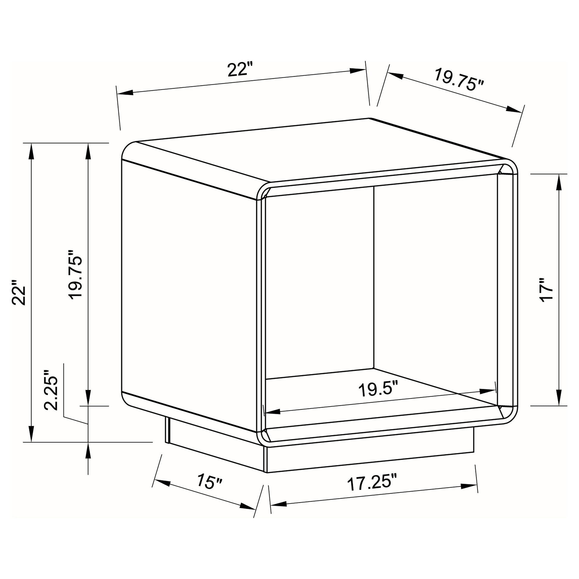 This matching end table continues the refined aesthetic with a white high gloss finish over engineered wood. Its compact form works perfectly as a side table or occasional table, while the open shelf adds convenient utility. As an accent table or utility table, it seamlessly aligns with the coffee table’s sleek presence, enhancing a cohesive, modern living room setting.