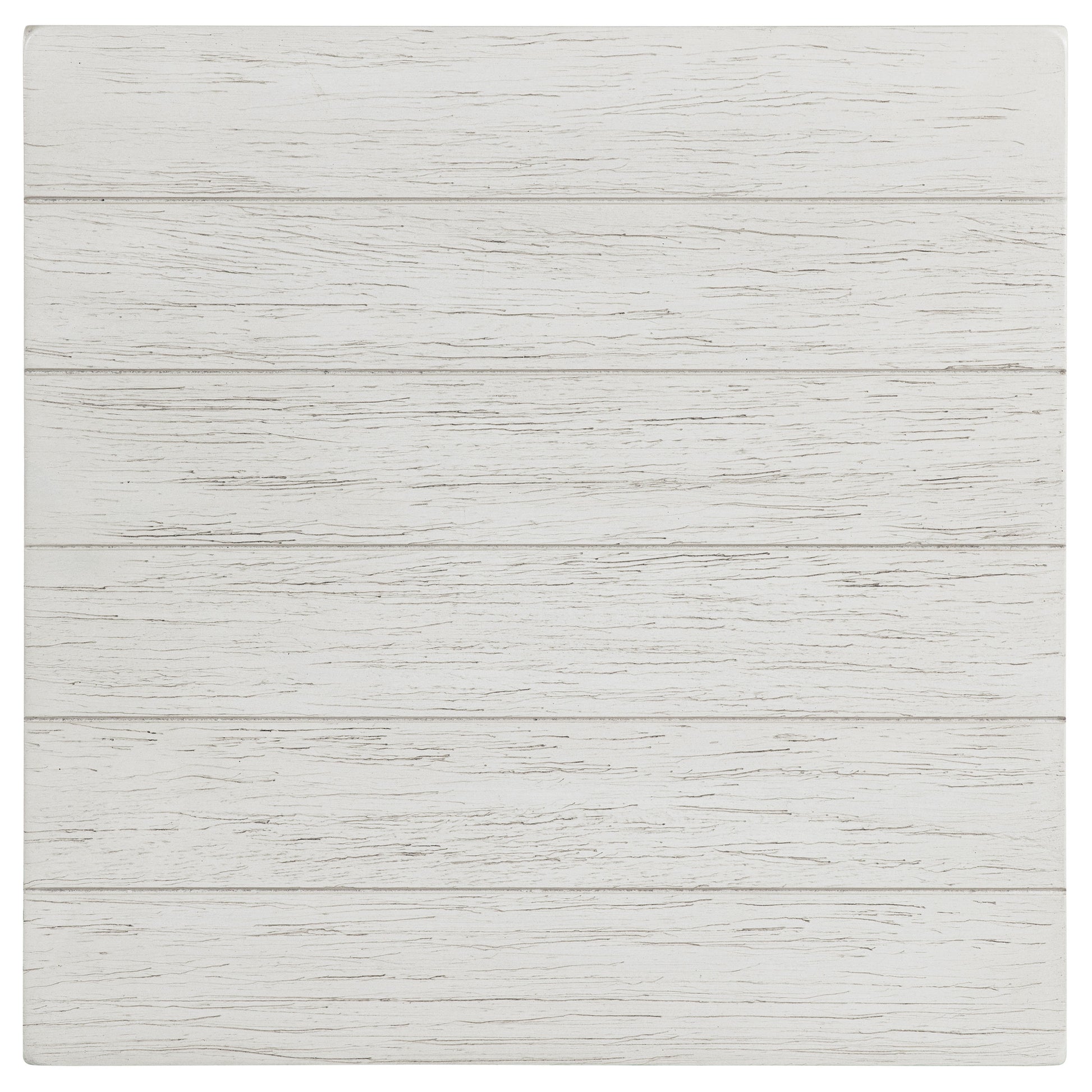 • Distressed white finish enhances its worn appeal, creating a hint of farmhouse flair in your layout