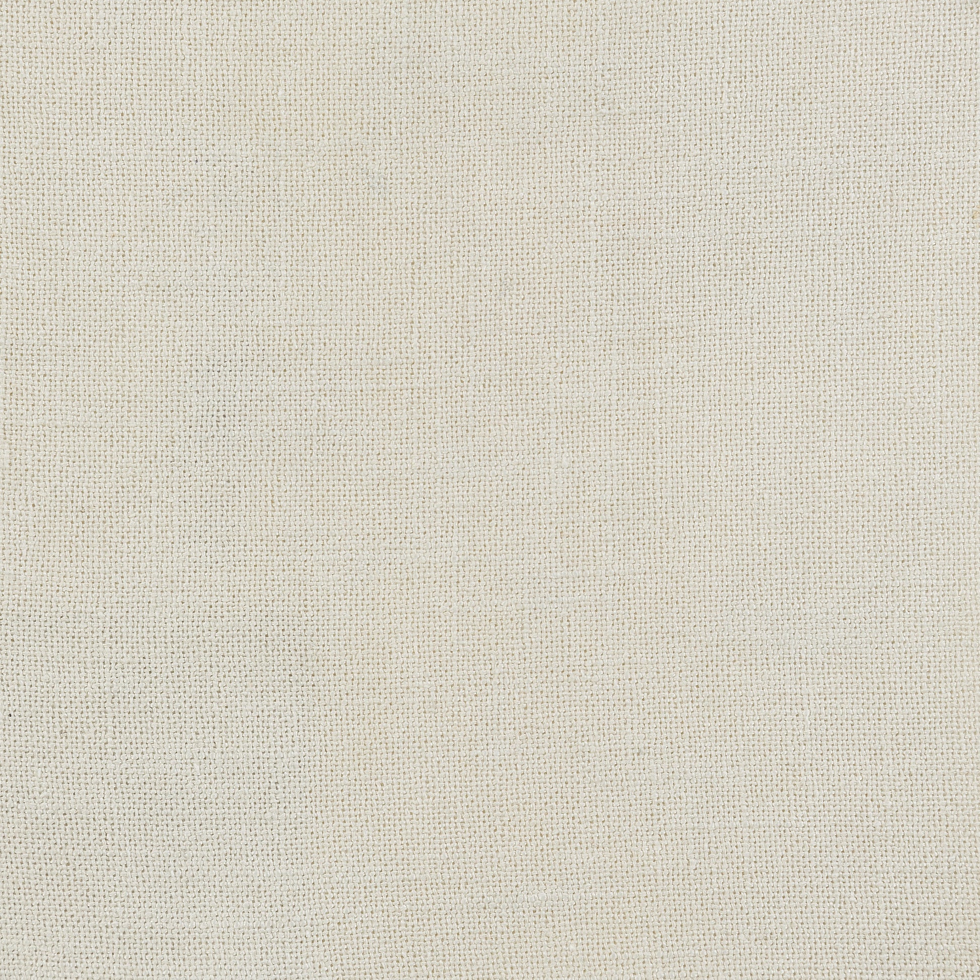 • Beige fabric chairs feature rolled backs and classic nailhead trim