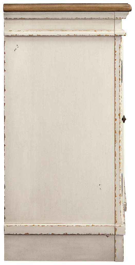 Elevating the art of traditional cottage styling, this TV stand with fireplace option is beautifully in tune with your taste. Antiqued two-tone aesthetic blends a chipped white with a distressed wood tone top for added charm. Cabinet doors’ decorative fretwork over mirrored glass adds a lovely twist. Compatible with W100-121 fireplace insert (sold separately).