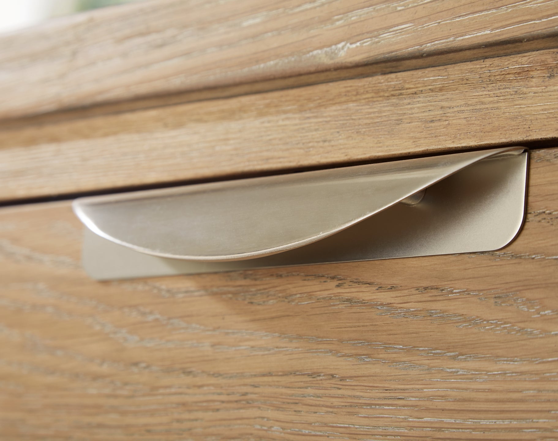 Details | Made with rubberwood solids, oak veneer and MDF substrates, Light oak finish with light wire-brushed wood grain texture, Bin pulls with silvertone finish, Drawer with fully finished interior, dovetail construction and ball-bearing side glides, Lower shelf, Softly shaped posts, Thick cove profiled top, Assembly required | |