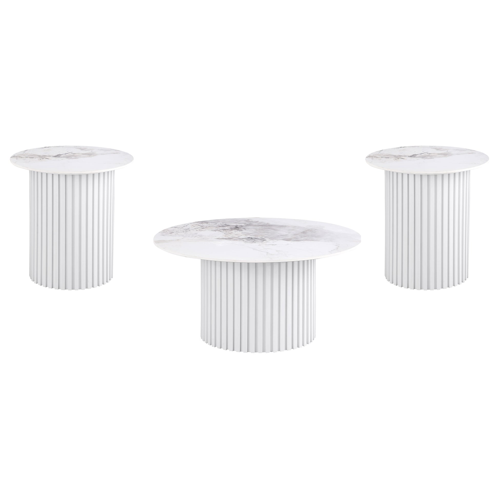 Rowena 3-piece Coffee and End Table Set White Faux Marble