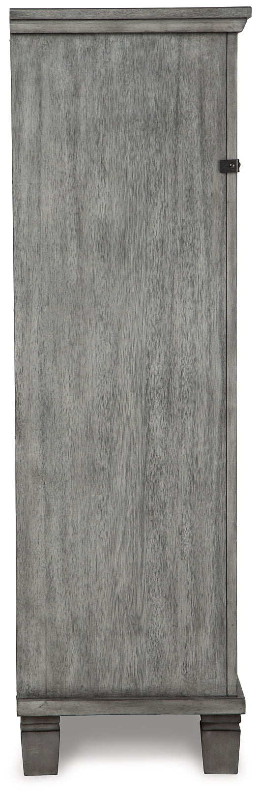 Details | Made with acacia wood, acacia veneer and engineered wood, Light weathered gray finish, Metal accents and straps with aged bronze-tone finish, 5 smooth-gliding drawers with dovetail construction | |