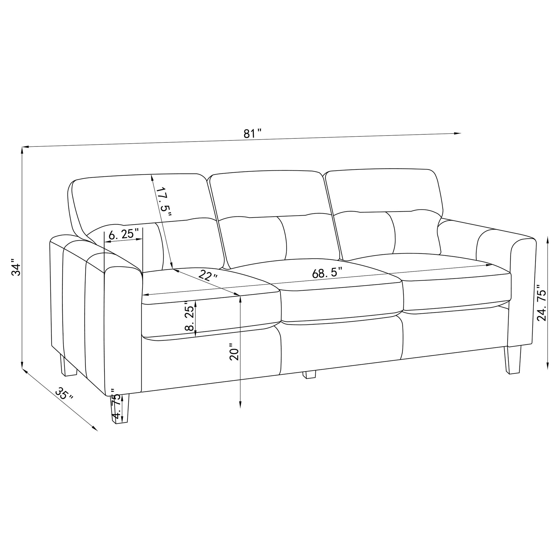 Unified by tailored silhouettes and softened edges, this seating set transforms the living room into a calm, intentional space. Smooth upholstery flows across deep cushions and wide arms, inviting rest and connection. Refined stitching and balanced lines ground each piece in quiet strength. Built for lasting comfort, this collection merges modern scale with everyday serenity and room-defining style.