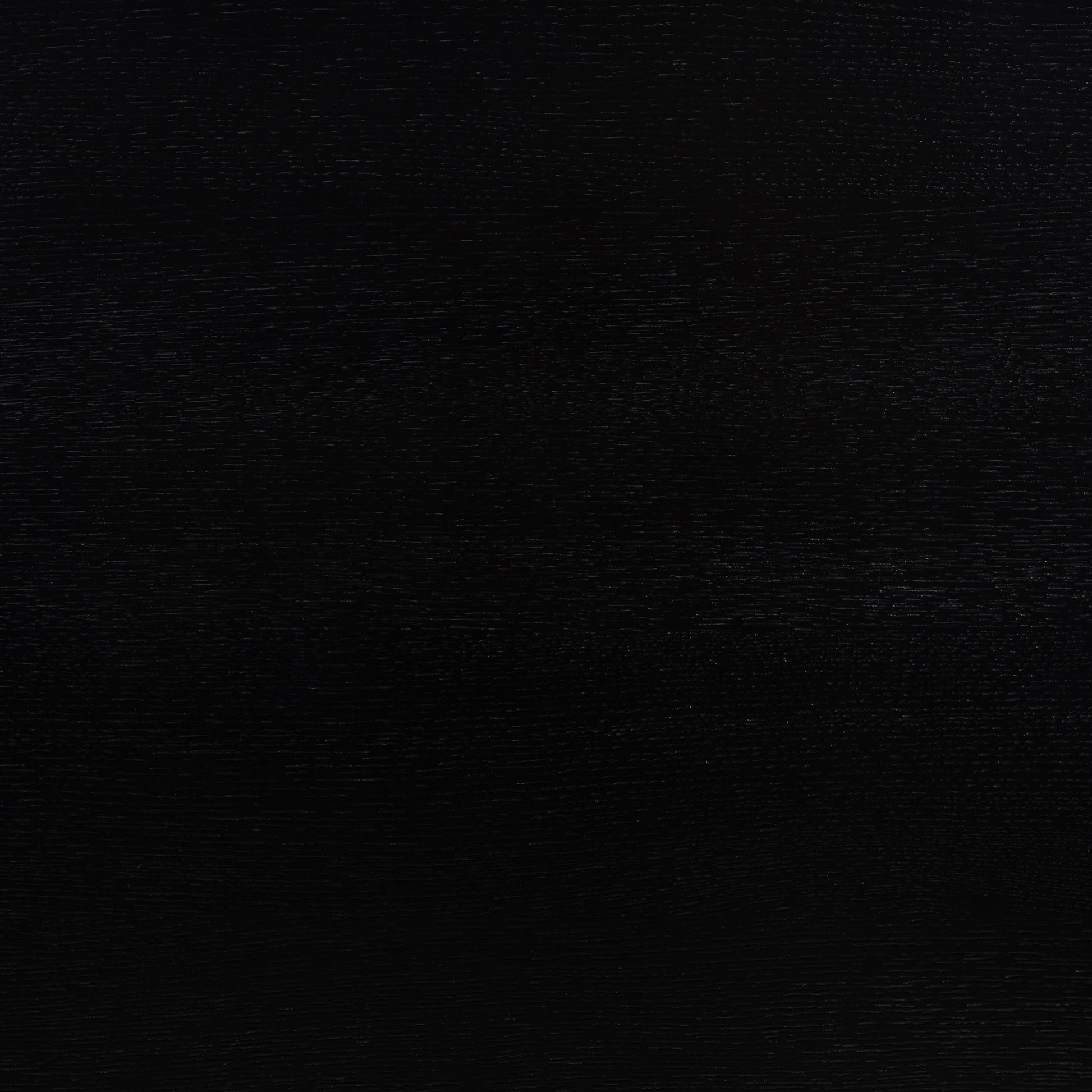• Black wood finish complements the bold silhouette and oak veneer table surface